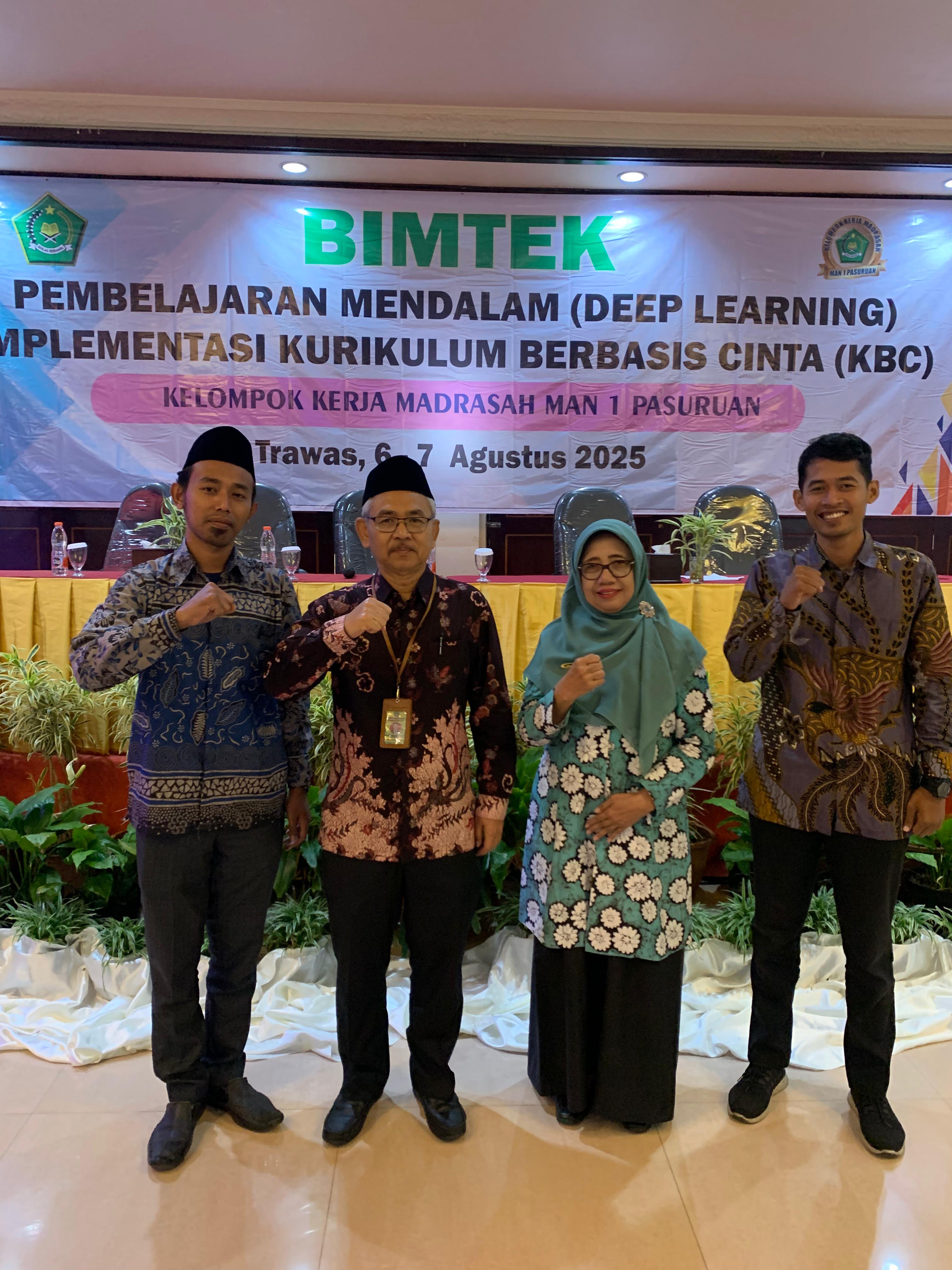Pasuruan, 06 Agustus 2025 — Dalam upaya terus meningkatkan mutu pendidikan dan kualitas pembelajaran, Kepala Madrasah bersama dewan guru MA Darussalam Ngembe mengikuti Bimbingan Teknis (Bimtek) Deep Learning & Kurikulum Cinta. Kegiatan ini diselenggarakan oleh Kelompok Kerja Madrasah Aliyah (KKMA) MAN 1 Pasuruan dan dihadiri oleh para pendidik dari berbagai madrasah di wilayah Kabupaten Pasuruan.Pembelajaran Lebih Mendalam dengan Deep LearningKonsep deep learning yang menjadi fokus utama dalam bimtek ini menekankan pembelajaran yang tidak sekadar menghafal, tetapi mendorong peserta didik untuk memahami materi secara menyeluruh, menghubungkan pengetahuan dengan kehidupan nyata, serta mampu menerapkannya dalam berbagai situasi. Dengan pendekatan ini, diharapkan siswa tidak hanya pintar secara akademik, tetapi juga memiliki kemampuan berpikir kritis, kreatif, dan problem solving yang baik.Kurikulum Cinta untuk Membentuk KarakterSelain deep learning, peserta juga mendapatkan pemahaman tentang Kurikulum Cinta yang menekankan nilai-nilai kasih sayang, empati, kepedulian, dan akhlak mulia dalam proses pembelajaran. Pendekatan ini diharapkan mampu menciptakan suasana belajar yang humanis, menyenangkan, dan penuh makna, sehingga siswa merasa dihargai dan termotivasi untuk terus belajar.Kegiatan yang Interaktif dan AplikatifSelama kegiatan berlangsung, para peserta terlibat aktif dalam sesi diskusi, berbagi pengalaman, simulasi pembelajaran, hingga praktik penyusunan rancangan pembelajaran yang memadukan teknologi, kreativitas, dan nilai-nilai karakter. Suasana pelatihan terasa hangat dan kolaboratif, membuat setiap peserta antusias mengikuti seluruh rangkaian agenda.Kepala MA Darussalam Ngembe menyampaikan rasa syukur dan apresiasinya atas kesempatan mengikuti bimtek ini. “Kegiatan ini menjadi bekal berharga bagi kami untuk menghadirkan pembelajaran yang bermakna. Kami berkomitmen untuk menerapkan hasil bimtek ini demi peningkatan kualitas pendidikan di MA Darussalam Ngembe,” ujarnya.Komitmen untuk Terus BerinovasiDengan adanya bimtek ini, MA Darussalam Ngembe menegaskan komitmennya untuk terus berinovasi, mengembangkan metode pembelajaran, dan meningkatkan kompetensi pendidik. Harapannya, seluruh guru dapat mengimplementasikan strategi pembelajaran yang diperoleh, sehingga berdampak positif pada peningkatan prestasi akademik dan pembentukan karakter siswa.Kegiatan seperti ini menjadi bukti nyata bahwa kolaborasi antar-madrasah melalui KKMA dapat menjadi sarana yang efektif untuk berbagi pengetahuan, meningkatkan profesionalisme guru, dan menciptakan ekosistem pendidikan yang unggul di wilayah Pasuruan.